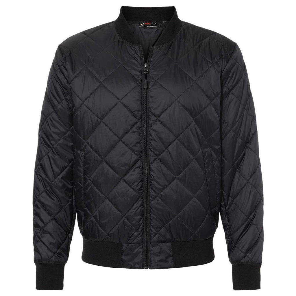 Design embroidery for the Weatherproof Men's Black Heat Last Quilted Packable Bomber for a creative look that also keeps you warm and toasty. The diamond quilted design has a coated nylon shell with polyester fill that is both wind and water resistant. A ribbed knit collar, cuffs, and waistband are a classic design that many will adore. Add a company logo to give as employee gifts to those who work their hardest year-round. Open welt pockets keep your phone at hand as you go about your day at home, work, or enjoying the sites around town.Corresponding Women's Style:Weatherproof Women's Black Heat Last Quilted Packable Bomber