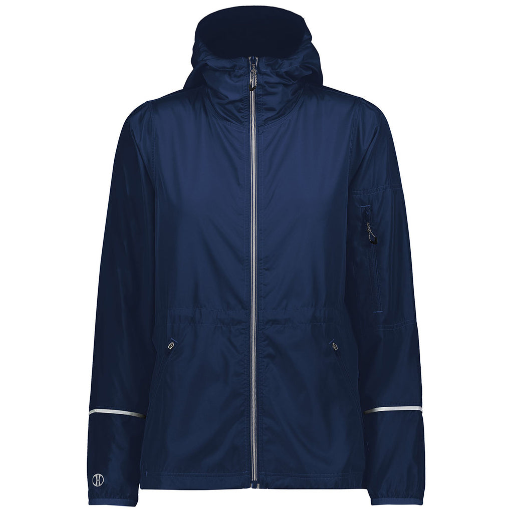 Holloway Women's Navy Packable Full Zip Jacket with a custom logo is a simple, unique option for outdoor adventure. The lightweight, win, and water-resistant jacket can be worn when the weather is cool and then packed away with ease. Great for biking, hiking, camping, and outdoor fun. Place an order today.Corresponding Men's Style: Holloway Men's Navy Packable Full Zip Jacket