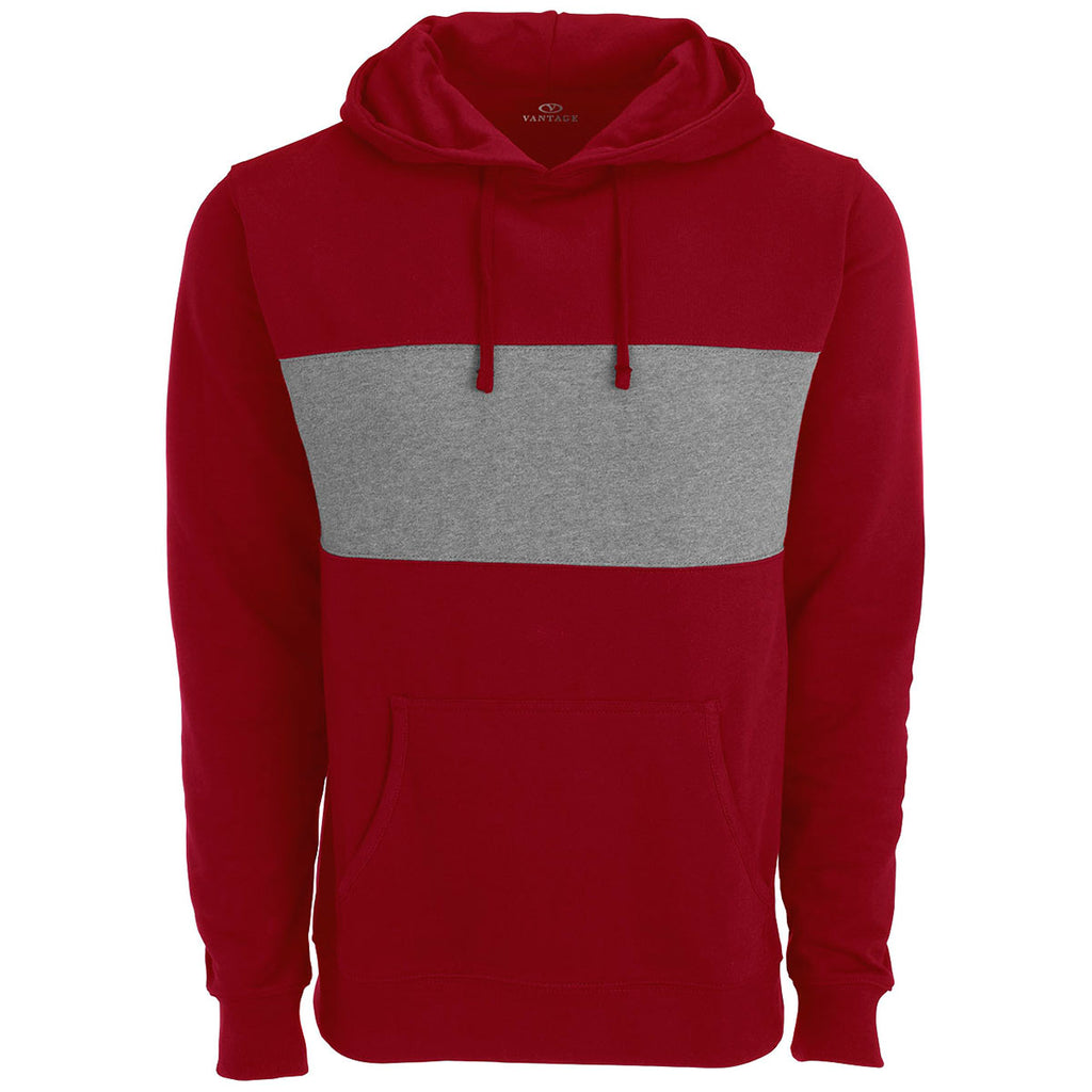 Vantage Men's Sport Red Premium Cotton Blocked Fleece Pullover Hoodie