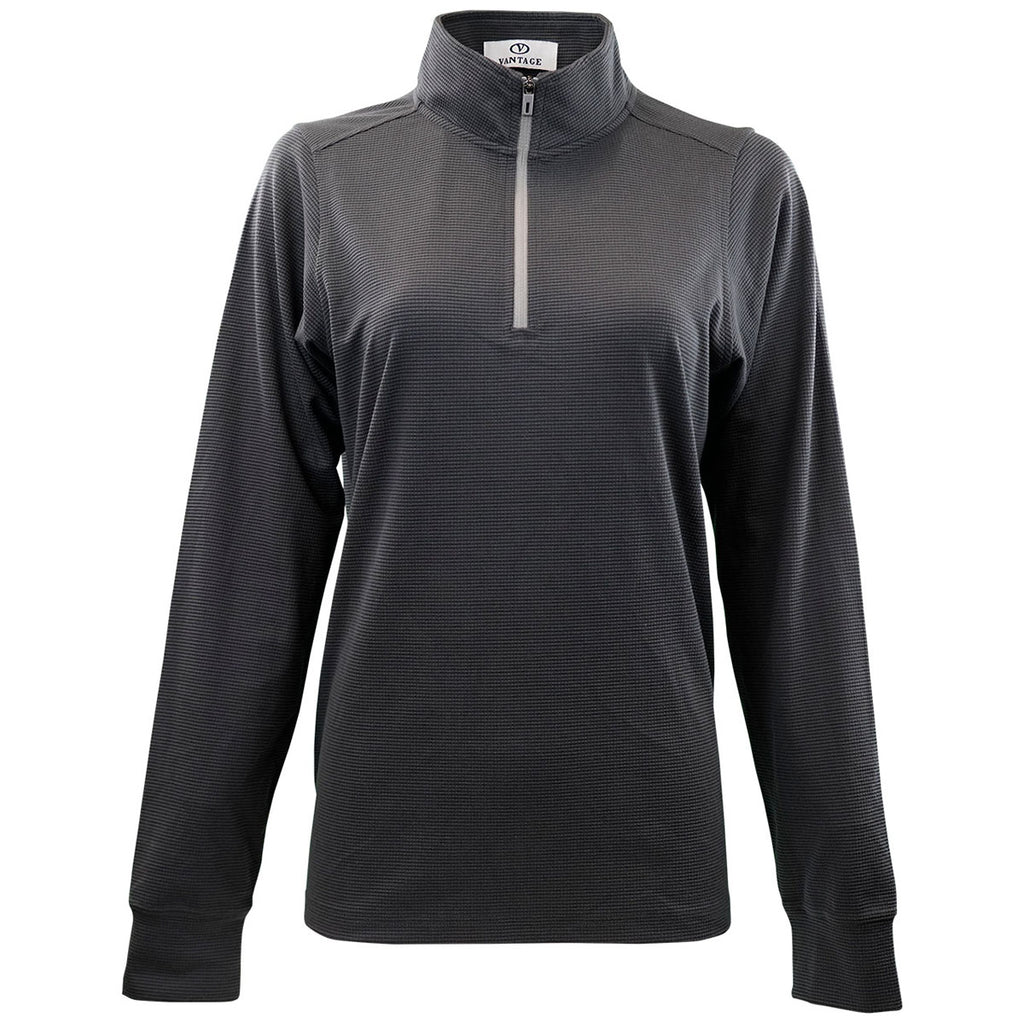 Vantage Women's Dark Grey Grid Quarter Zip Pullover with a corporate logo creates a simple and easy-to-wear top layer to keep your look professional yet comfortable. Ideal as part of a uniform for those working in the public or as a versatile addition to your personal wardrobe. The simple quarter-zip is comfortable for all-day wear. Place an order today.Corresponding Men's Style: Vantage Men's Dark Grey Grid Quarter Zip Pullover
