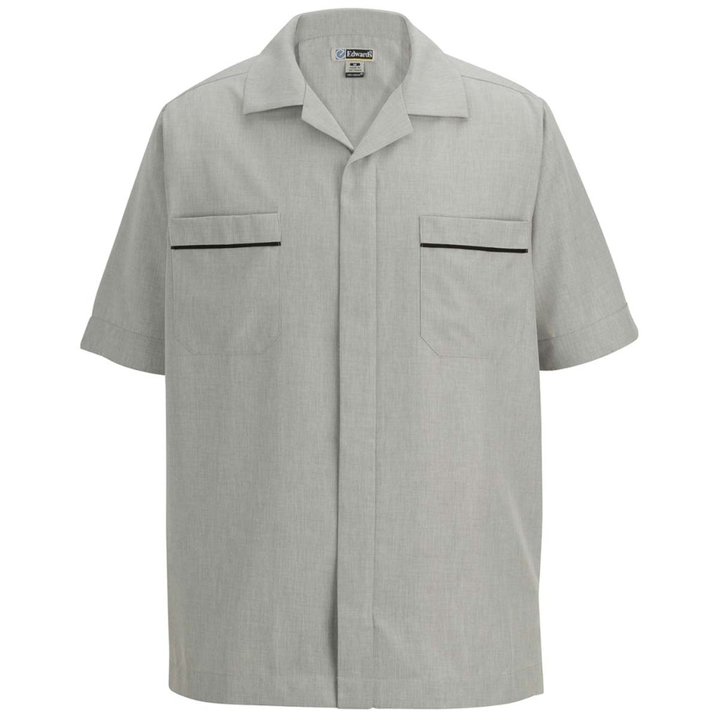 Add a custom embroidery to the Edwards Men's Platinum Pinnacle Service Shirt to create a look unique to your company or organization. Made of 100% polyester the contemporary styling of this comfortable to wear, easily washable shirt is unmatched. Available in six color combinations this service shirt is ideal as part of employee apparel when paired with slacks or as corporate uniforms for large organizations. The hidden placket with zipper down front with snap closure ensures a tidy appearance on the short sleeve shirt with contrasting piping on the pockets.Highlights