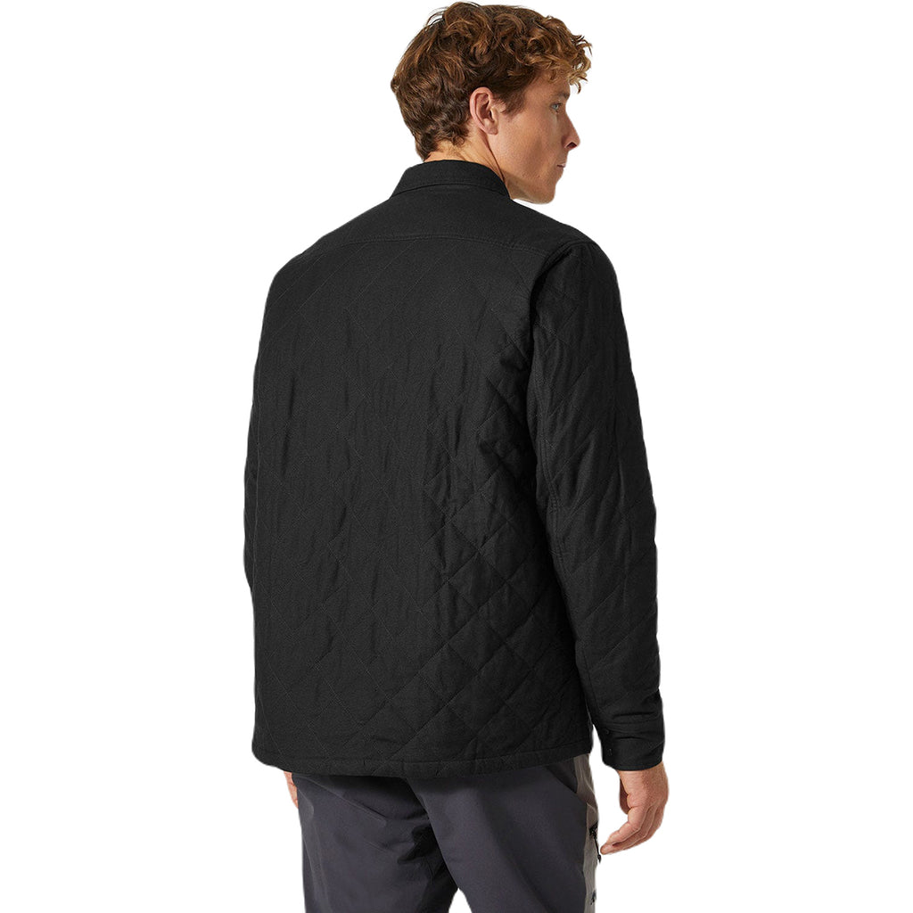 Helly Hansen Men's Ebony Isfjord Insulated Shacket with embroidery has the look of a soft shirt with the warmth provided by an insulator. This simple layering piece is made of recycled material mixed with organic cotton for comfortable all-day wear. Great for running errands, the morning commute, or general wear. Place an order today.This product cannot ship outside of the United States.