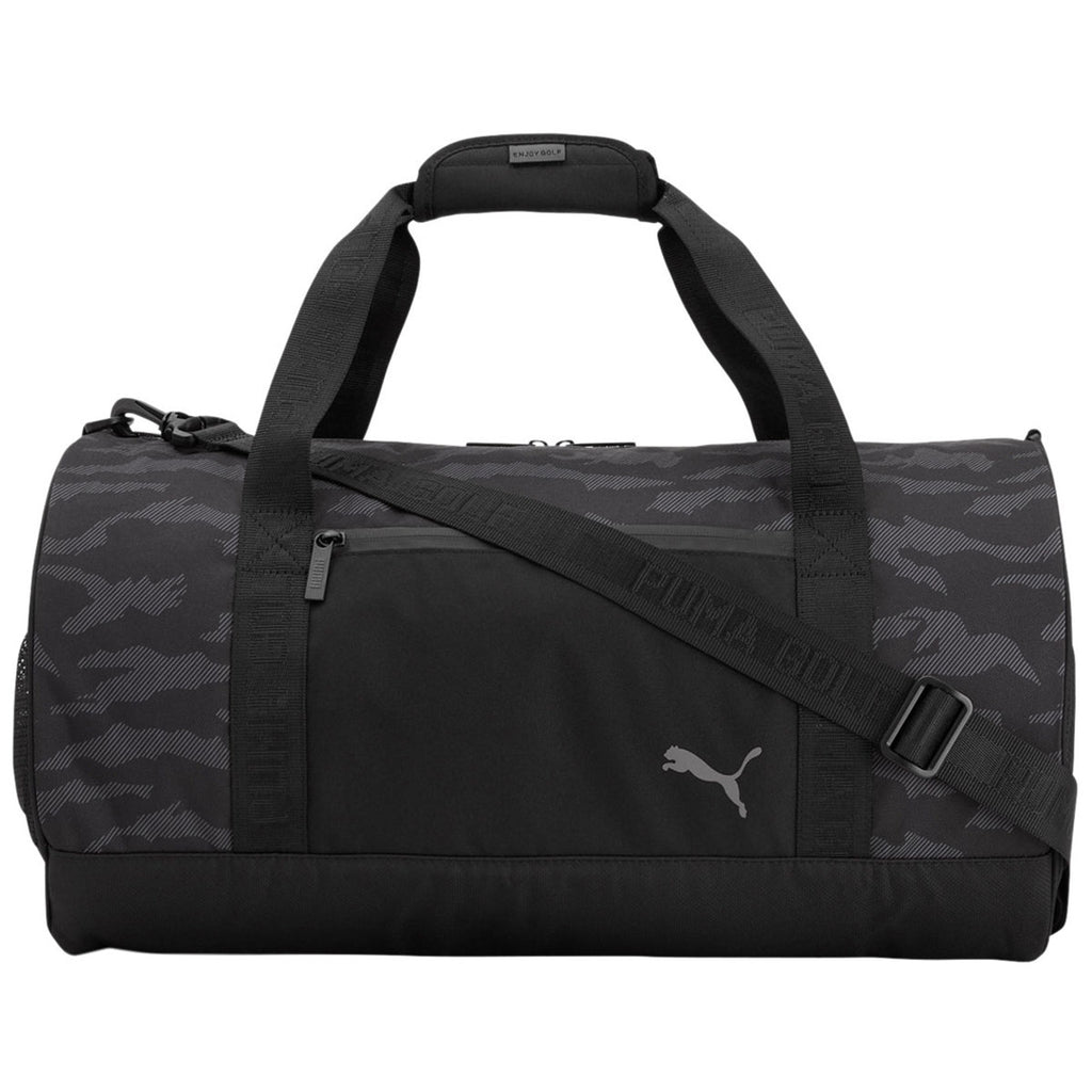 Your custom logo on the Puma Golf Puma Black Camo Barrel Duffel creates an easy-to-recognize bag for travel, sports, or heading to the clubhouse. The two-way zippered main compartment is large enough to serve as an overnight bag, while the mesh side pocket is great for small items. Place an order right away.This product can only ship within the United States and Canada.