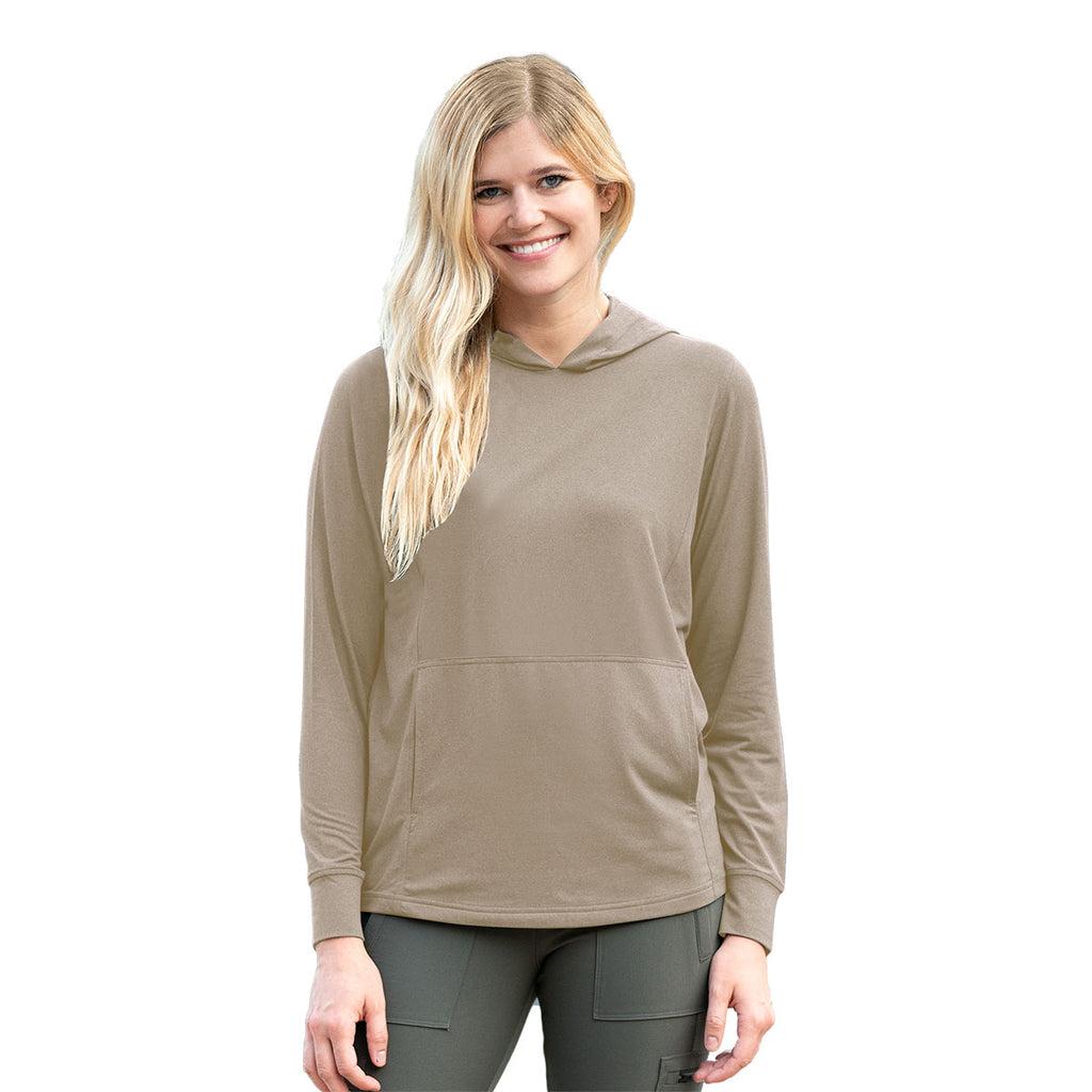 Create a screen print for the Vansport Women's Beach Trek Hoodie made of recycled materials combined with other material to create a sleek look that is ultra comfortable with moisture wicking capabilities. Great for layering over a tank or tee, this performance hoodie would make a great employee gift or custom gift for family and friends. This will be the hoodie that you choose over and over again, rain or shine. The kangaroo pocket is ideal for storing small items as you hike, bike, workout, or head to work.Corresponding Men's Style: Vansport Men's Beach Trek Hoodie