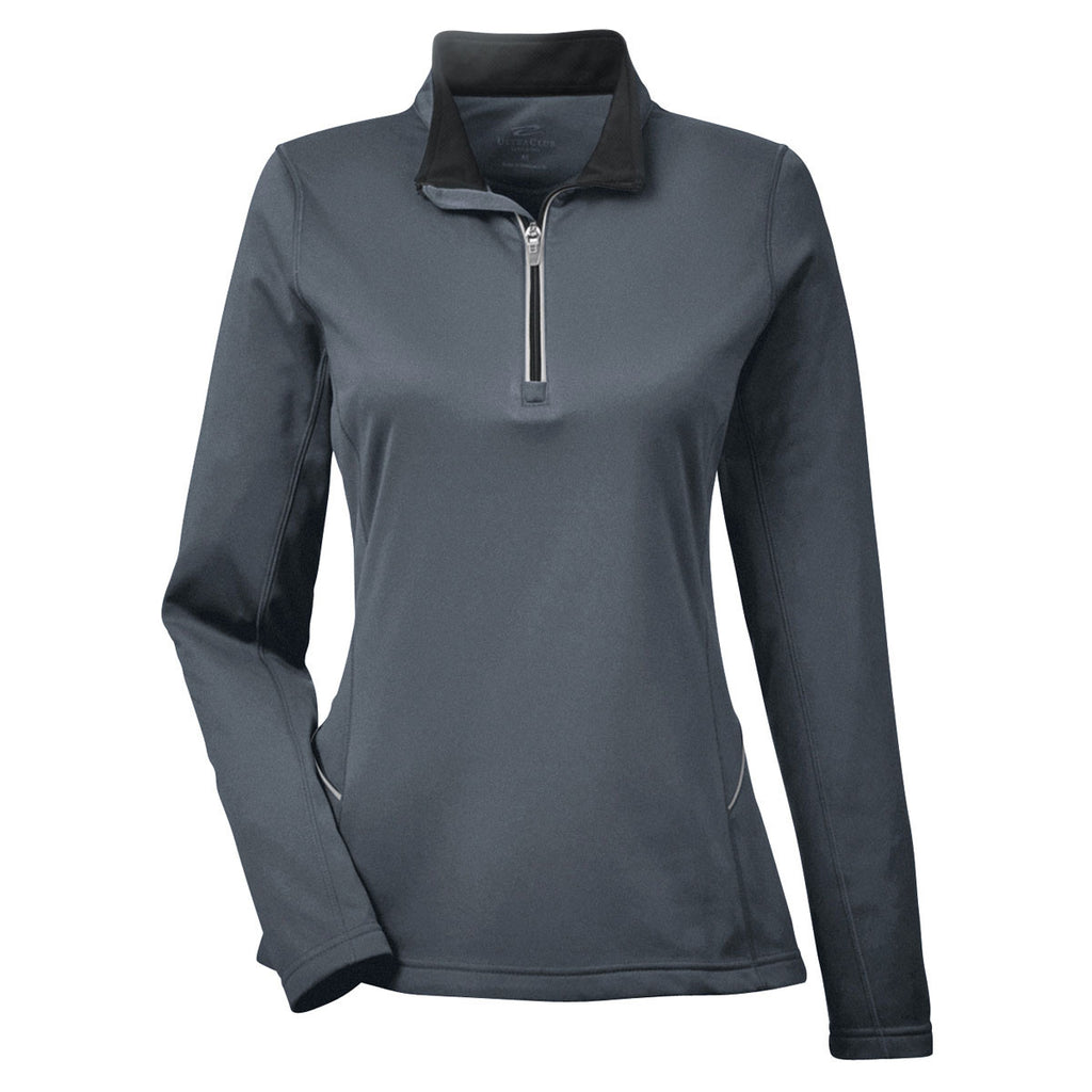 UltraClub Women's Charcoal Cool & Dry Sport Quarter-Zip Pullover