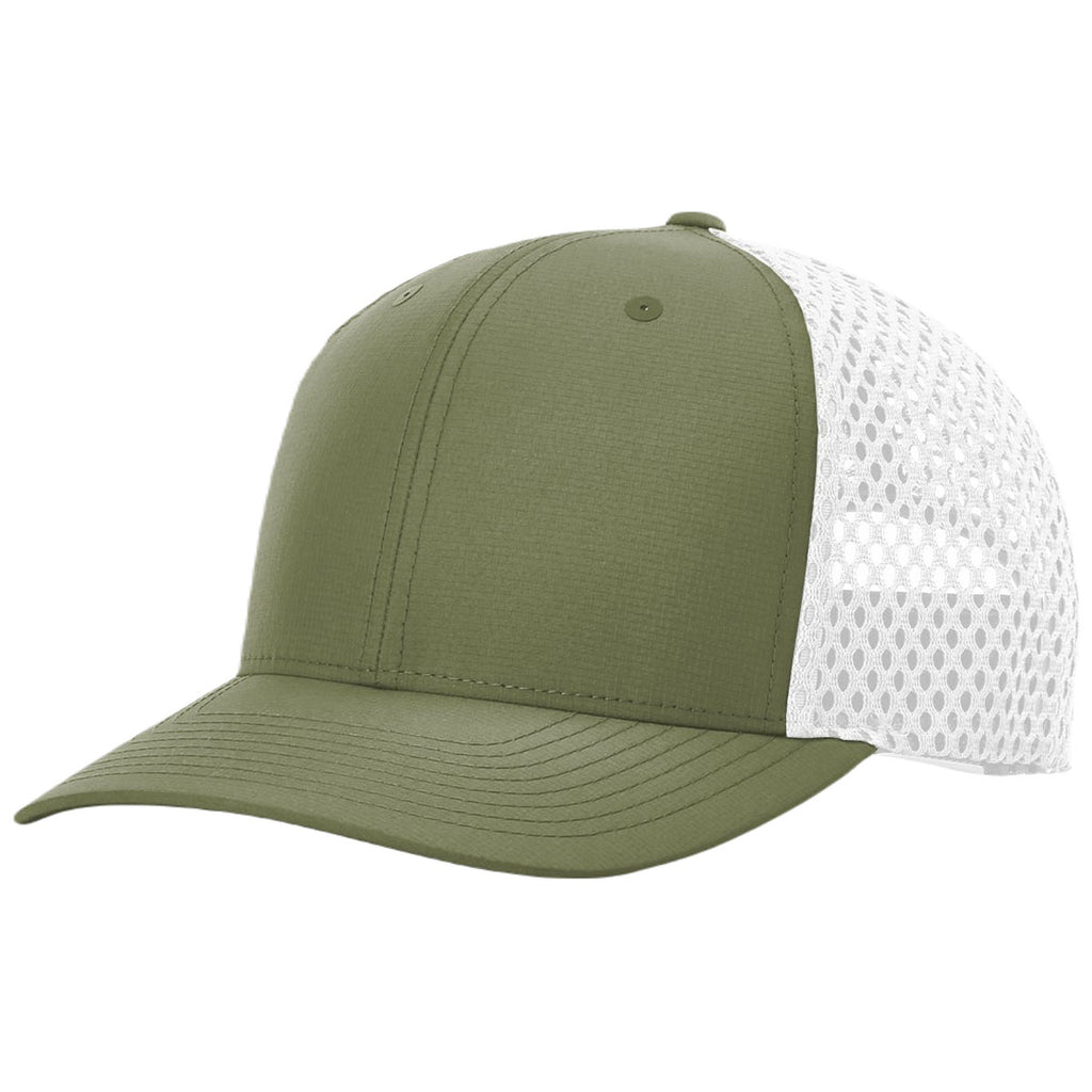 Richardson Olive/White Split Tilikum Cap with a custom logo is a fun and convenient way to get your name and brand on display. The ripstop polyester has open ventilated mesh on the back of the 6-panel trucker-style cap for lightweight durability and a technical look. Great for warm weather adventures like fishing, hunting, or hiking. Place an order today.The minimum order for this product is 48 pieces.