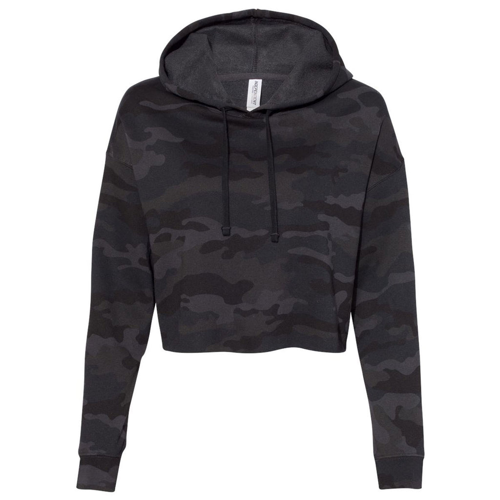Independent Trading Co. Women's Black Camo Lightweight Cropped Hooded Sweatshirt