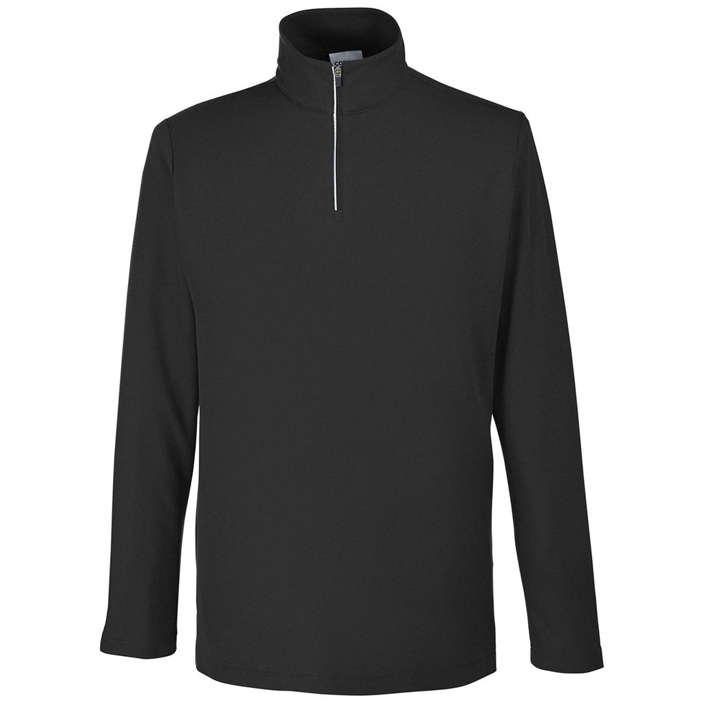 Keep things simple with a custom embroidery Core 365 Men's Black Fusion ChromaSoft Pique Quarter-Zip. This straightforward quarter sip is ideal as an employee gift with a company logo lovingly placed to show affiliation. The 100% polyester pique material has ChromaSoft technology to combine colorfastness and cotton feel and performance. Complete with moisture wicking and antimicrobial properties, the quarter sip will stand up to a long day's work indoors and out. A center front coil zipper with rubber pull, reflective piping, side vents, and tear away label are ideal for work, play, and exercise as needed.Corresponding Women's Style:Core 365 Women's Black Fusion ChromaSoft Pique Quarter-Zip