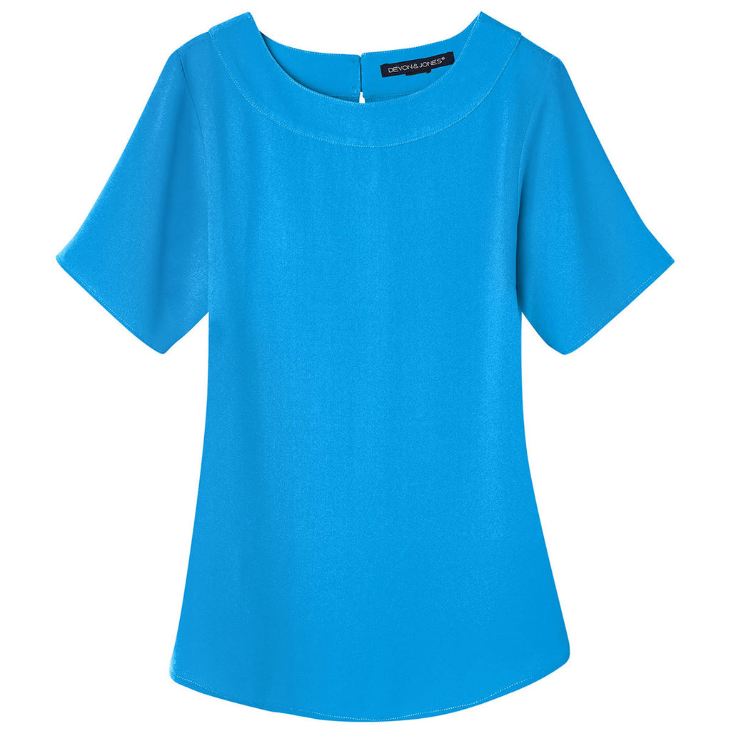Devon & Jones Women's Ocean Blue Perfect Fit Boat-Neck Blouse