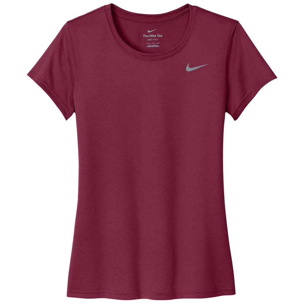Nike Women's Team Maroon Team rLegend Tee with a custom logo is a must have for those who are active. This slightly fitted tee with Dri-FIT technology and made with sustainable recycled material can serve as a uniform, warm-up wear, or just an everyday favorite. Order yours today before time runs out.This product cannot ship outside of the United States.