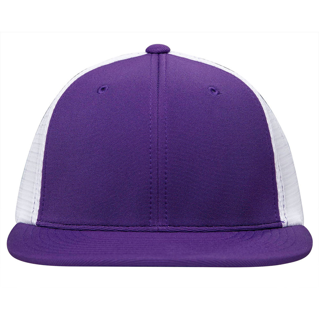 Add embroidery to the Pacific Headwear Purple/White/Purple Premium M2 Performance Trucker FlexFit Cap for a new take on a true classic. This trucker mesh performance mesh cap has a pro-stitch finish that is durable enough for daily wear as employee apparel or while hanging with friends. Add a custom logo to start building your logoed apparel line with this perfect combination of form, fashion, and function. The FlexFit cap has anti-microbial properties, moisture wicking, and is stain resistant. The full-profile design with a flat visor has a closed back for a one size fits most creation that will be an instant hit.Highlights