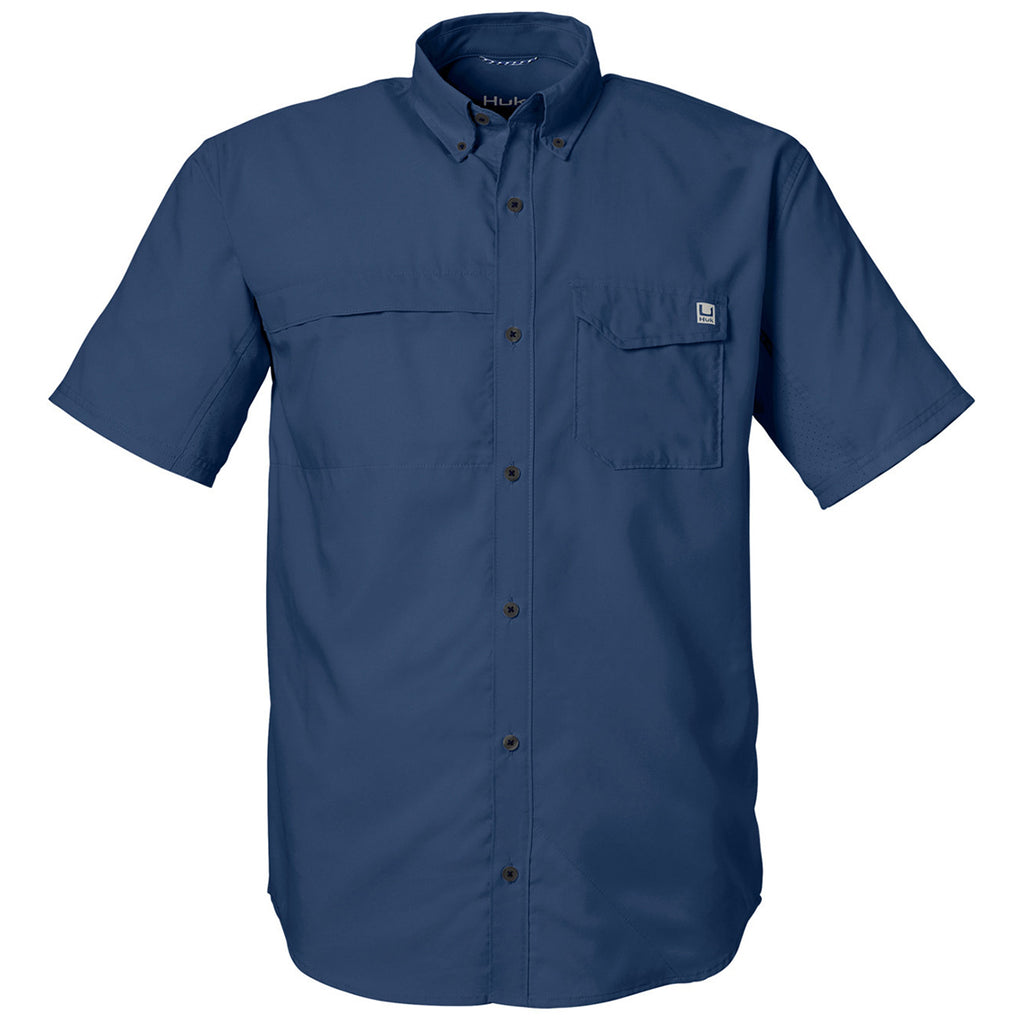 Create a corporate logo for the HUK Men's Naval Academy Tide Point Short Sleeve Shirt to create a look to give to employees or share with clients. This short-sleeve button-up is durable, breathable, and comfortable for daily wear. Great for those who work outdoors, visit customer homes, or simply love the outdoors.Highlights