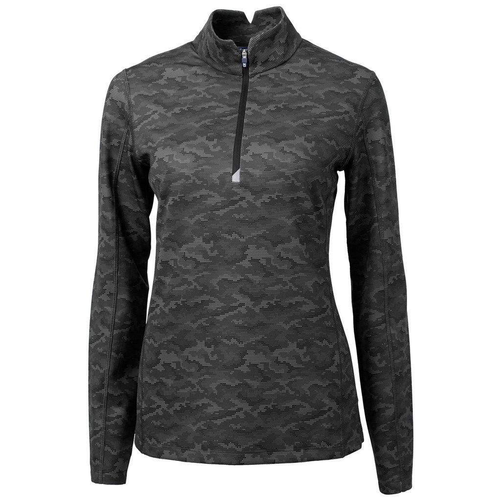 Cutter & Buck Women's Black Traverse Camo Print Stretch Quarter Zip Pullover