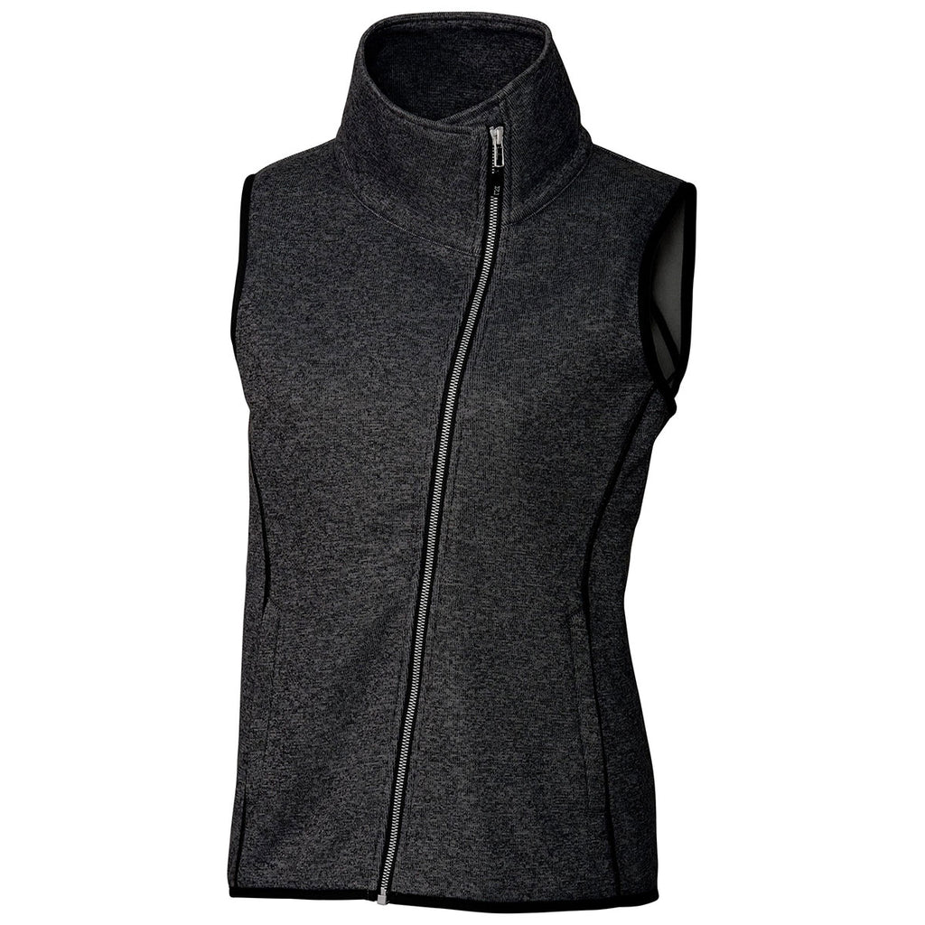 The Cutter & Buck Women's Charcoal Heather Mainsail Vest offers a comfortable vest where style is readily apparent. When you add your company logo to the vest, you turn this stylish apparel item into an advertising item that everyone will want to wear. The women's vest is available in a variety of classic colors and you're sure to find quite a few options that look great with your company logo. Features of this women's vest include a 100% polyester material, tonal top stitching, brushed fleece interior, asymmetrical full zip front style, front pockets with zip, and CB logo on the back. Purchase this item in bulk and hand it out as corporate apparel gifts to everyone!Corresponding Men's Style:Cutter & Buck Men's Charcoal Heather Mainsail Vest