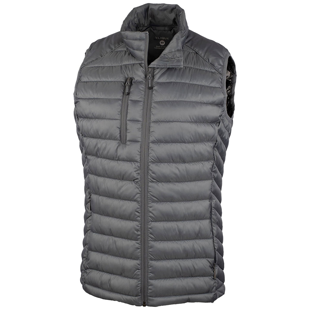 The Clique Women's Grey Hudson Vest offers stylish comfort that is perfect for layering together with a long-sleeve shirt. Add a custom company logo to this women's vest and choose from a variety of eye-catching colors. Welcome features of this women's vest include a 100% polyester material, water resistant quilted fabric shell, zip front pockets, and adjustable hem. This highly applauded women's vest is sure to be a fan favorite so make sure you order enough to hand out to employees at the office as well as guests at any and all upcoming corporate events, such as golf events and recruiting events.Corresponding Men's Style:Clique Men's Grey Hudson Vest
