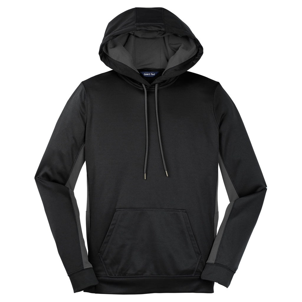 Corresponding Men's Style:Sport-Tek Men's Black/ Dark Smoke Grey Sport-Wick Fleece Colorblock Hooded Pullover