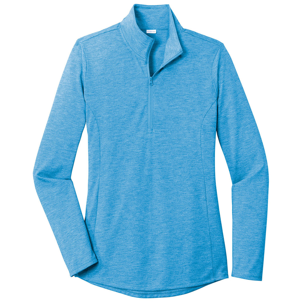 Sport-Tek Women's Pond Blue Heather PosiCharge Tri-Blend Wicking 1/4-Zip Pullover
