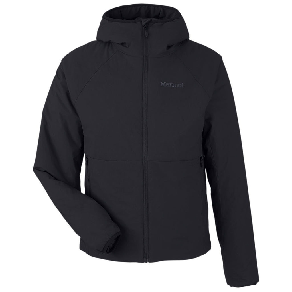 Design embroidery for the Marmot Men's Black Novus Jacket for an upscale look that is great for a day with friends or a day at work. Try a corporate logo for the breathable jacket with a fixed hood to create a look that could serve as a uniform or special event option as needed. Place an order right away.This product can only ship within the United States and Canada.