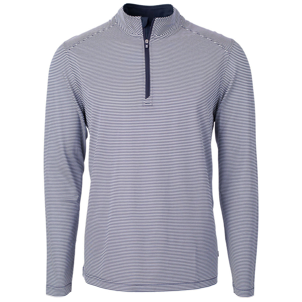 Cutter & Buck Men's Navy Blue/White Virtue Eco Pique Micro Strip Recycled Quarter Zip
