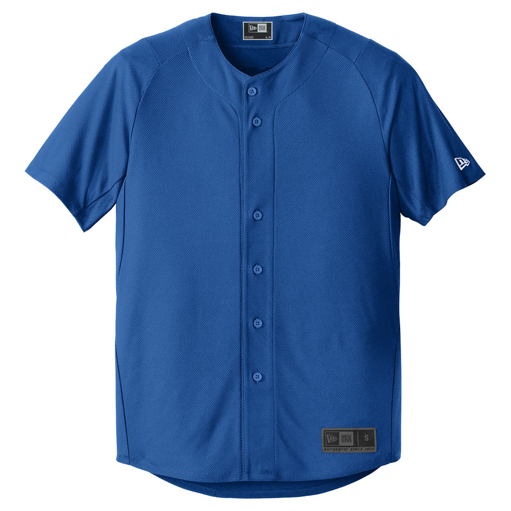 The embroidered New Era Men's Royal Diamond Era Full-Button Jersey is a man's best corporate apparel friend when it comes time for company sports season. Crafted from the same polyester diamond fabric that New Era uses to create its renowned line of caps, the sleek jersey includes raglan sleeves to increase arm movement flexibility. Engraved New Era dyed-to-match buttons act as magnets for everyone you pass on the way to the big game. With attention riveted on your chic full-button jersey, display the corporate logo you added on the large imprint area. With a custom logo, you connect with more customer prospects.