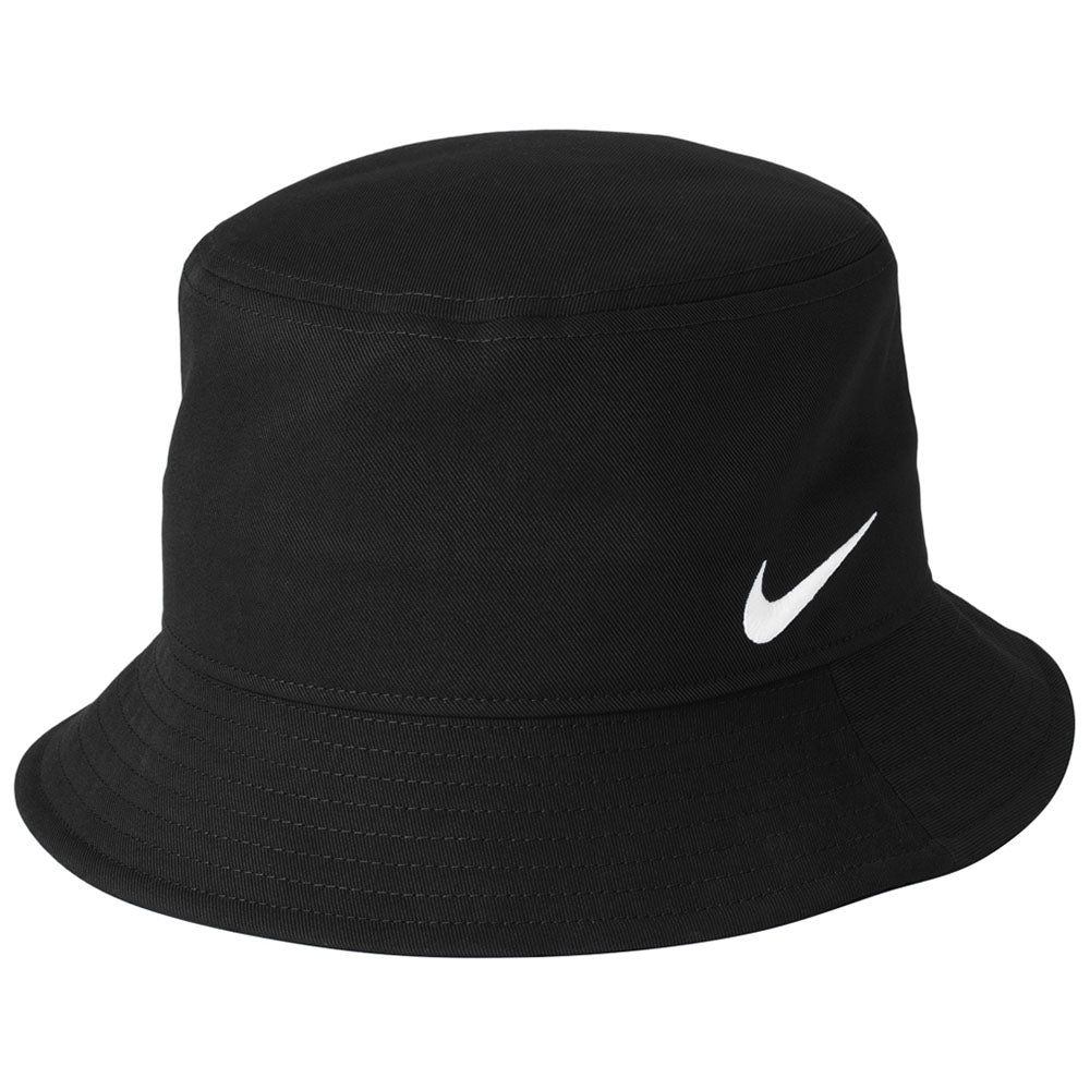 Nike Black Swoosh Bucket Hat with a custom logo is a fun way to top a look. This bucket hat offers 360-degree coverage to keep you cool while looking cool. Featuring a Nike Swoosh on one side, the recycled polyester twill bucket hat will be a hit with most wearers. Place an order right away to make sure you are protected the next time you enjoy time on the water or resting by the pool.This product cannot ship outside of the United States.