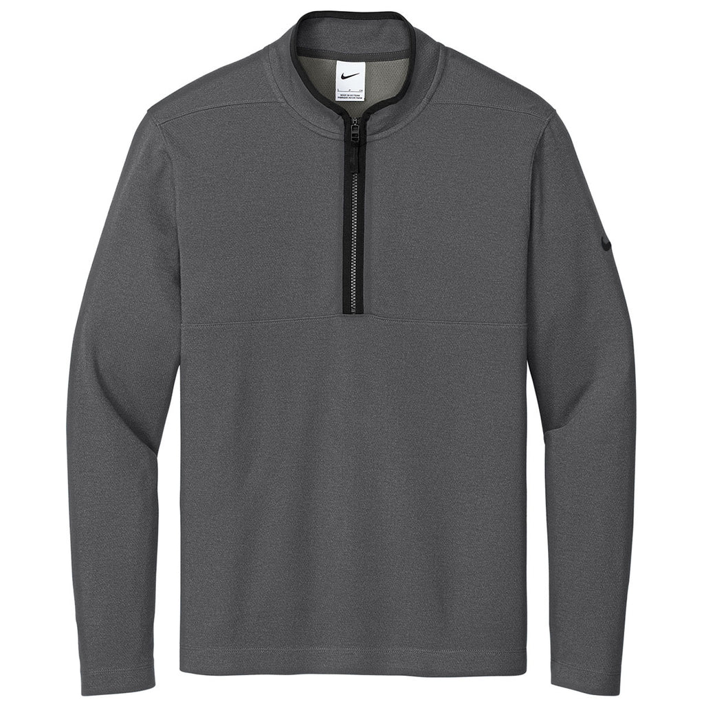 Add a custom logo to the Nike Men's Dark Grey Textured 1/2 Zip Cover-Up for a simple yet versatile layering option that is fun and easy to wear. The breathable, slightly brushed fabric is lightweight while keeping you warm for evening adventure. Use as company-wide apparel or add to your personal logoed apparel line.This product cannot ship outside of the United States.