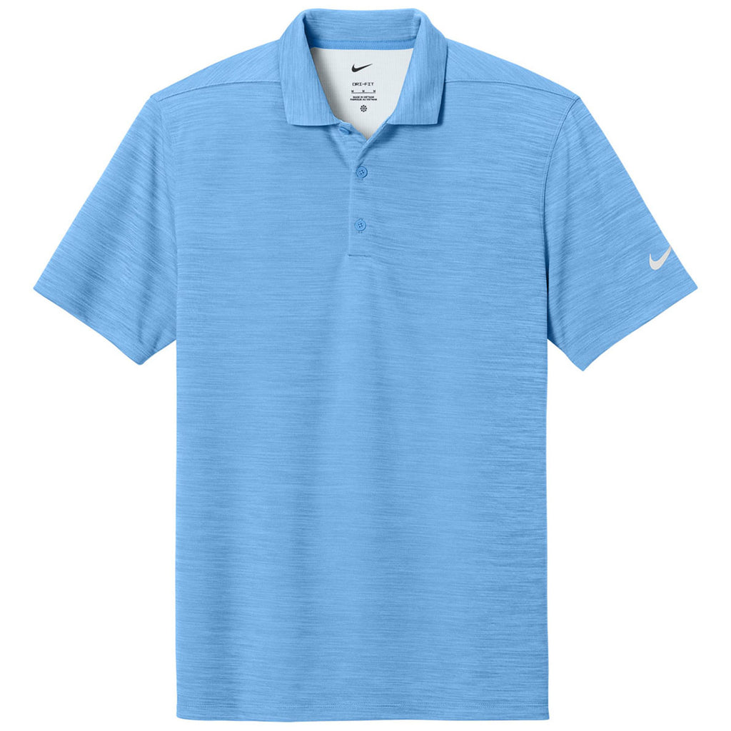 Nike Men's University Blue Dri-FIT Striated Polo blends custom performance with style. Featuring moisture-wicking technology, it ensures you stay dry and comfortable, whether on the golf course or at the office. The subtle striated texture adds a modern touch, making this polo a versatile choice for professional and casual settings.This product cannot ship outside of the United States.