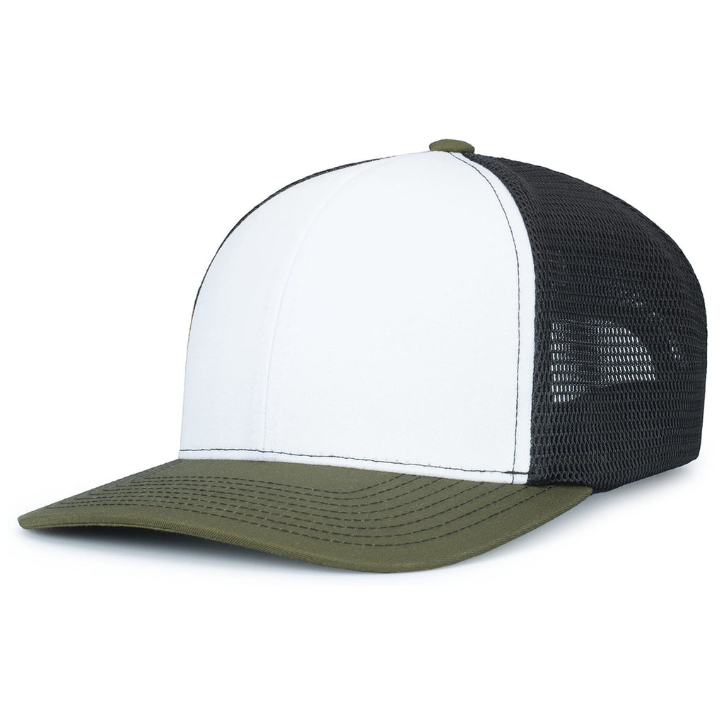 Add your corporate logo to the Pacific Headwear White/Light Charcoal/MossContrast Stitch Trucker Pacflex Snapback Cap for a fun and simple way to showcase your brand. The iconic trucker cap is a one-size-fits-most adjustable design with mesh backing, a mid-profile, and a curved visor that is easy to wear and share, whether at a trade show, special event, or to increase customer relations. Order today.Highlights