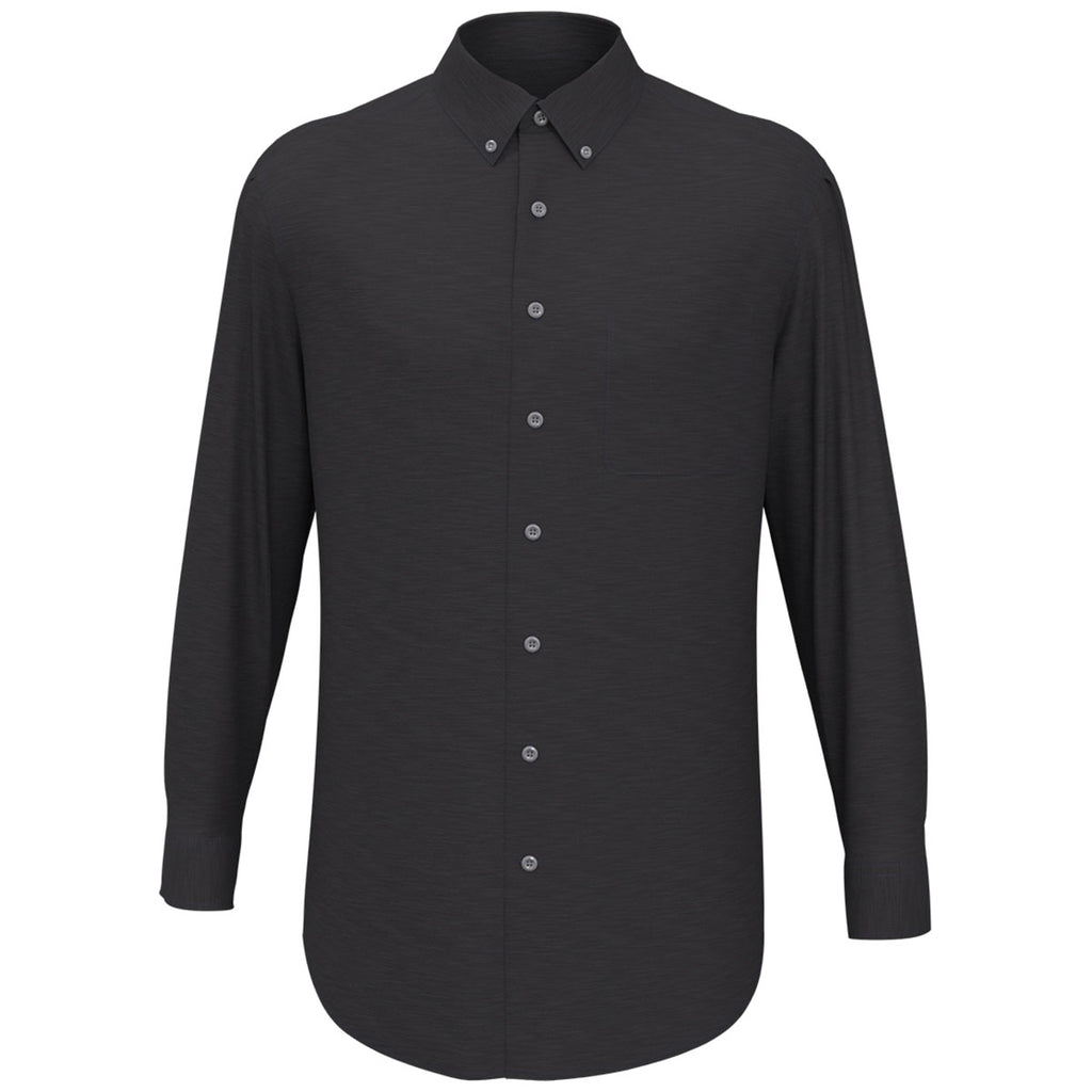 Add a corporate logo to the Perry Ellis Men's Caviar Black Heathered Woven Shirt for a high-end look that is ready for the office. The cotton, polyester, and elastane blend has an 8-button front, button-down collar, and adjustable cuffs for a clean, sharp look that lasts all day. Place an order today; these will sell fast.Corresponding Women's Style: Perry Ellis Women's Caviar Black Heathered Woven Shirt