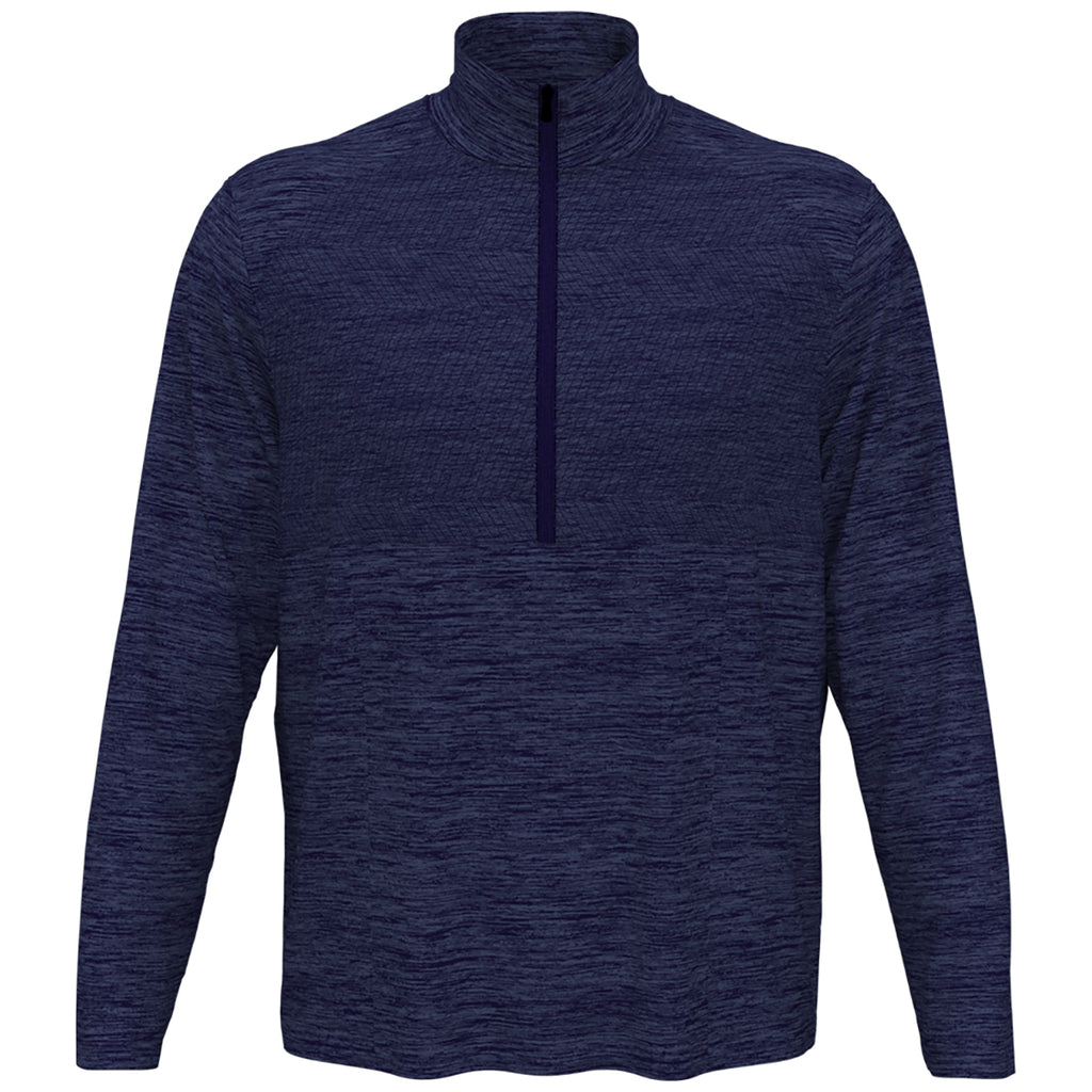 Add a custom logo to the Perry Ellis Men's Peacoat Navy Heather 1/4 Zip Pullover for a gorgeous layering option that is ready for whatever your day holds. The long sleeve pullover is water-repellant with a UPF 50+ protection to keep you safe from the sun. An excellent option for camping, biking, golf, tennis, and more. Place an order today.Corresponding Women's Style: Perry Ellis Women's Peacoat Navy Heather 1/4 Zip Pullover