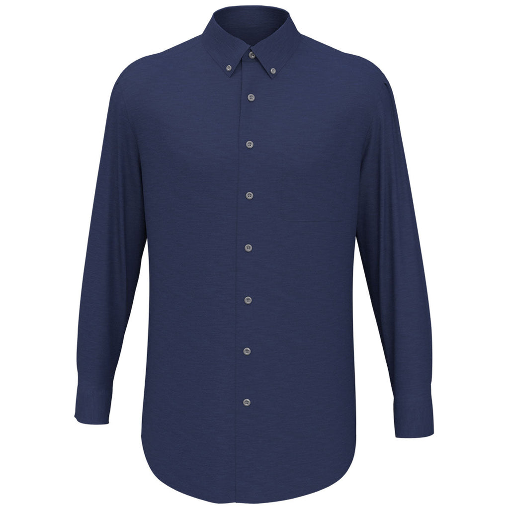 Add a corporate logo to the Perry Ellis Men's Classic Navy Heathered Woven Shirt for a high-end look that is ready for the office. The cotton, polyester, and elastane blend has an 8-button front, button-down collar, and adjustable cuffs for a clean, sharp look that lasts all day. Place an order today; these will sell fast.Corresponding Women's Style: Perry Ellis Women's Classic Navy Heathered Woven Shirt