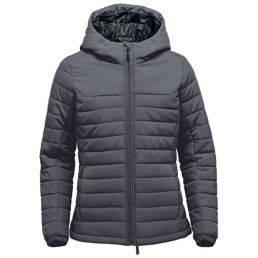Stormtech Women's Dolphin Nautilus Quilted Hoody with embroidery creates a versatile look that is wonderful for most outdoor adventures. The outer layer keeps you dry with a waterproof finish, and the inner layer keeps you warm. Lightweight and easy to layer, this hoody is a must-have. Place an order right away.Corresponding Men's Style: Stormtech Men's Dolphin Nautilus Quilted Hoody