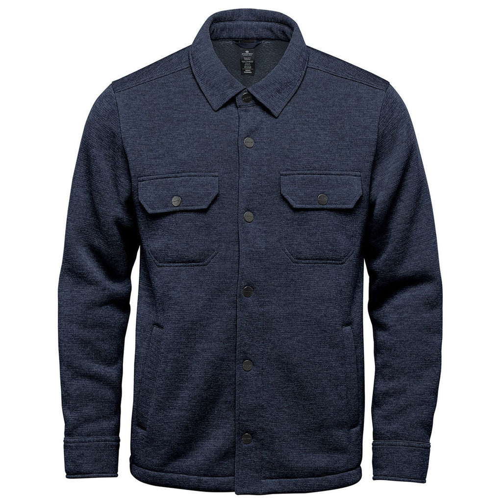 Add a custom logo to the Stormtech Men's Navy Heather Avalante Fleece Shirt for a high-end uniform or work shirt that will stand up to cooler weather. The on-trend detailing elevated the practical design of the snap closure front, hand warmer pockets, and adjustable cuffs. Ideal for layering when a little extra protection is needed. Place an order soon.Highlights