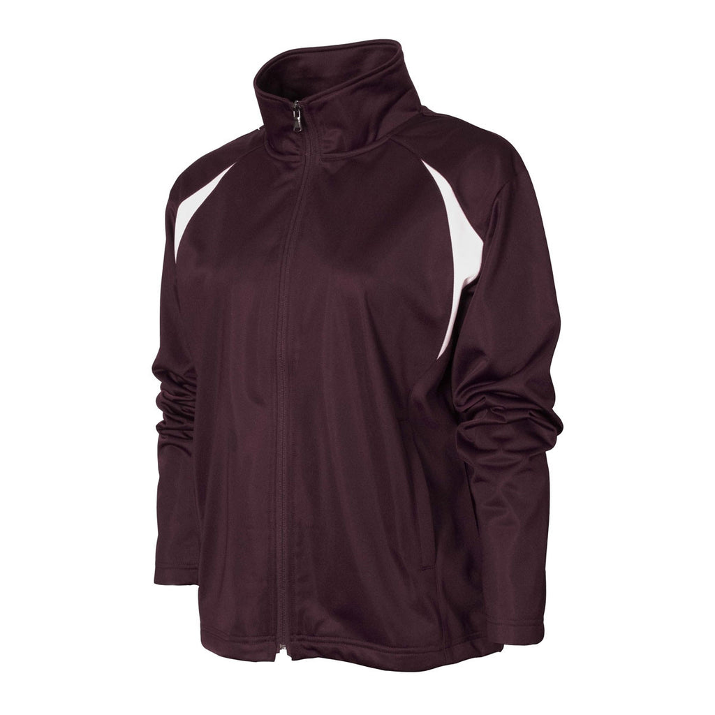 Women appreciate a striking jacket that is chic and colorful. When you have your custom logo on the BAW Women's Maroon/White Colorblock Tricot Jacket it will certainly draw attention. This colorblock jacket made from brushed tricot. You have accent trim on the upper chest near the sleeves and also across the back yoke. This is a moisture management fabric with a full front zipper so you can protect your neck area. The jacket has slash pockets, and an open bottom with drawstring and cord lock. Available sizes are S to 3X.Corresponding Men's Style: BAW Men's Maroon/White Colorblock Tricot Jacket