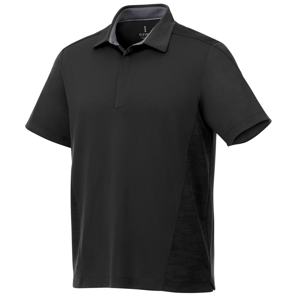 Add a company logo to the Elevate Men's Black Piedmont Short Sleeve Polo for a look that is professional and functional. This polo offers subtle graphic and reflective details that help get you noticed whether at work or hanging with friends. Try a custom logo to create a custom gift for friends and family or use these polos to support a cause or organization. The hidden button placket and UPF of up to 40+ are just the beginning. This polo is also snag resistant, moisture wicking, and offers wash and wear performance. This short goes well beyond the basic polo.Corresponding Women's Style:Elevate Women's Black Piedmont Short Sleeve Polo