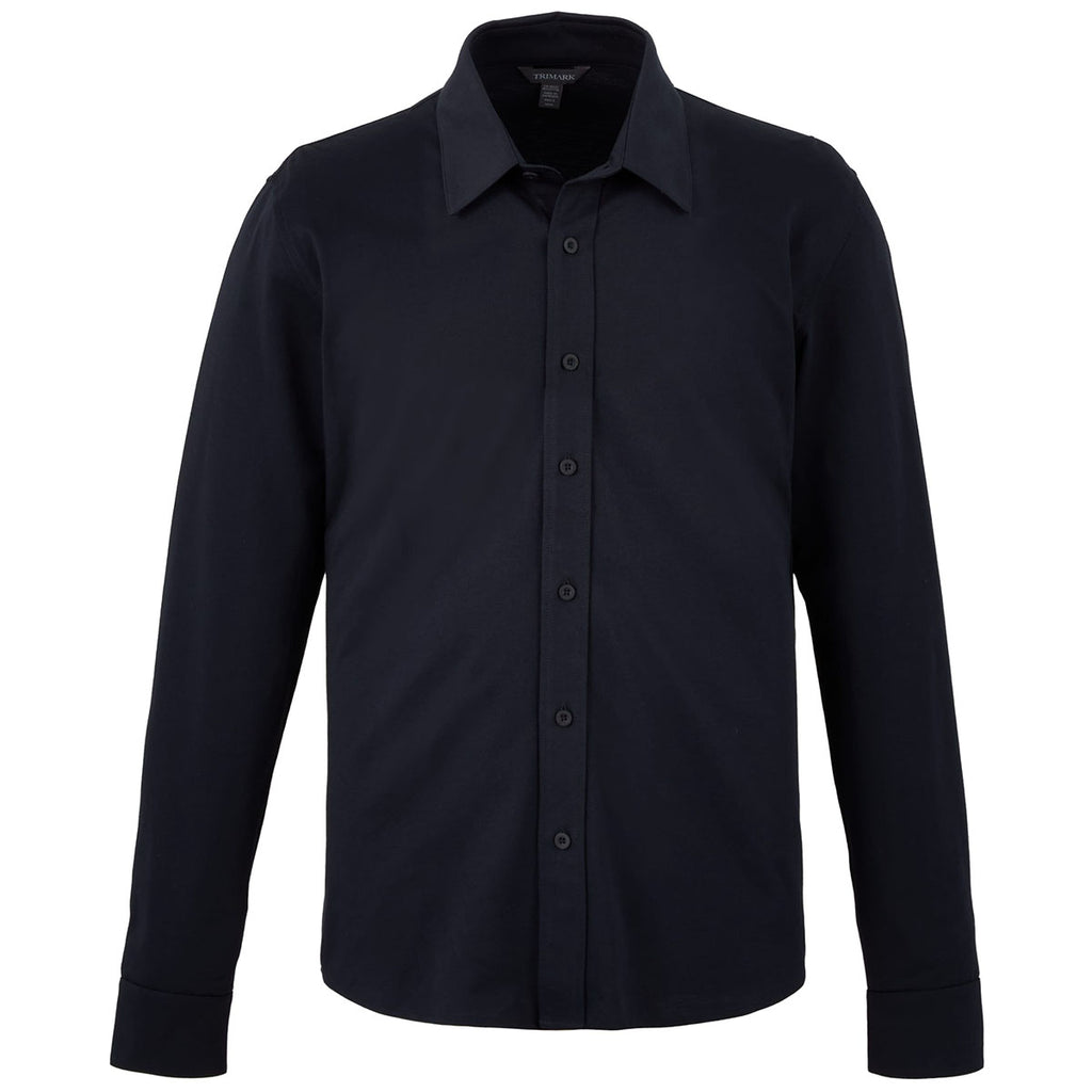 Elevate Men's Navy TATRA Eco Knit Long Sleeve Button Up Shirt