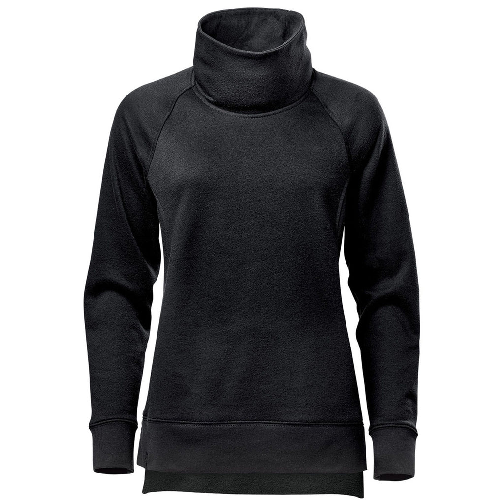 Embroider your company's custom logo or design onto the Stormtech Women's Black Monashee Cowl Neck Pullover to create a sleek, sophisticated sweater that is on the cutting-edge of current trends. The classic silhouette is incredibly sophisticated - plus, it's created from a blend of recycled, sustainably sourced materials.