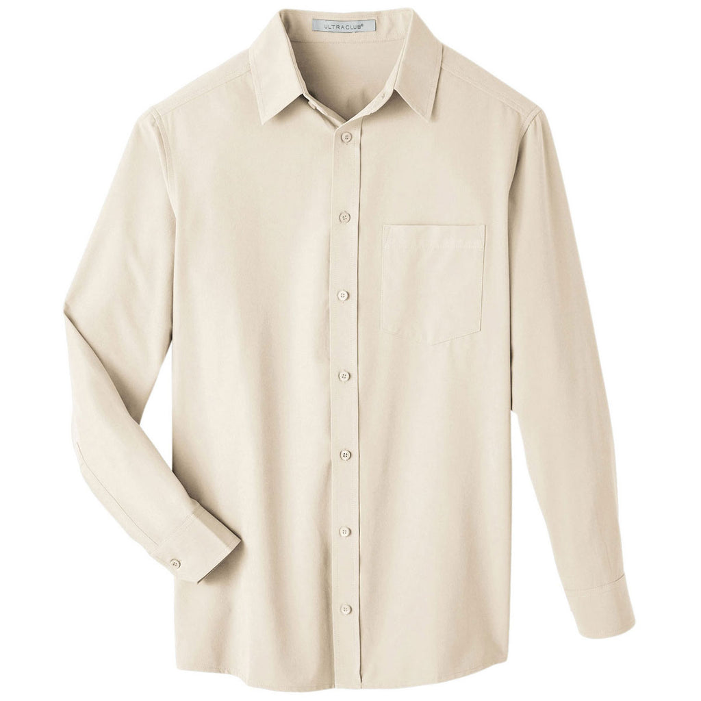Look and feel great in a custom UltraClub Men's Stone Bradley Performance Woven Shirt made of a polyester rich woven spandex. Perfect as corporate apparel, this button up has pearlized buttons to match the overall shirt color and a spread collar for the professional look you need and deserve. Add a company logo to use as employee apparel or uniforms in high end settings where appearance is key. Adjustable cuffs and stretch performance offers a custom, active fit and easy care means daily wear is not an issue. Complete with a left chest pocket, this is a must have garment.Corresponding Women's Style: UltraClub Women's Stone Bradley Performance Woven Shirt