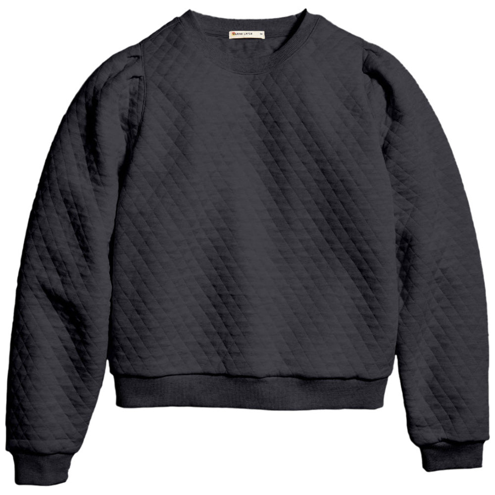Marine Layer Women's Charcoal Corbet Quilted Puff Sleeve Crewneck