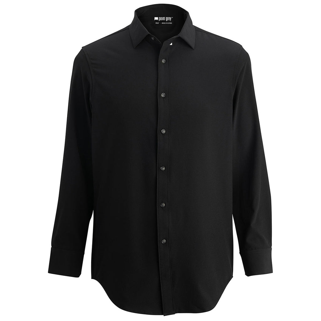 Choose a custom logo for the Edwards Men's Black Point Grey Shirt to create a unique look for the office or a night out on the town. The luxury performance shirt with long sleeves and fold-down collar creates a sleek look that can be worn alone or paired with a jacket to create a professional look. Place your order today.Highlights