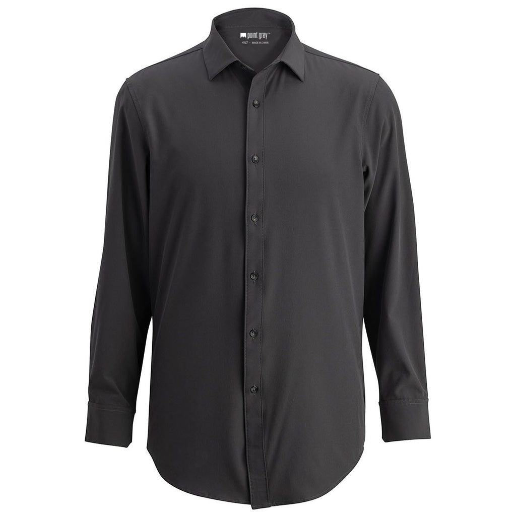 Choose a custom logo for the Edwards Men's Forged Iron Point Grey Shirt to create a unique look for the office or a night out on the town. The luxury performance shirt with long sleeves and fold-down collar creates a sleek look that can be worn alone or paired with a jacket to create a professional look. Place your order today.Highlights