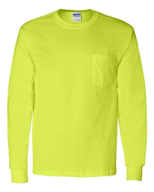 Gildan Unisex Safety Green Ultra Cotton Long-Sleeve Pocket T-Shirt