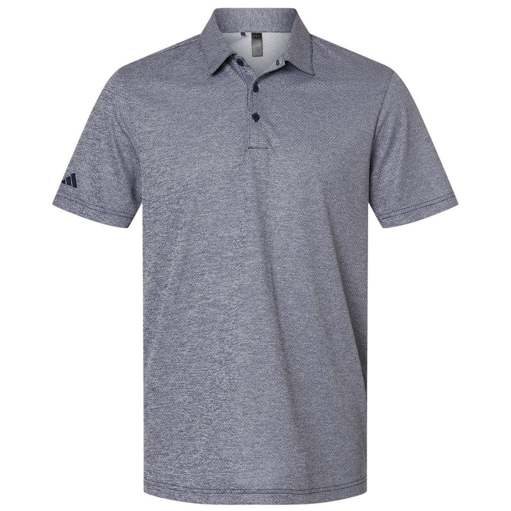 Adidas Men's Collegiate Navy Melange Space Dyed Polo with a corporate logo is a fashion-forward way to showcase your company or brand. Whether playing in a golf tournament, working out of the office, or showcasing products at a trade show, this is a true must-have. The contrasting Adidas logo is on the right sleeve.This product cannot ship outside of the United States