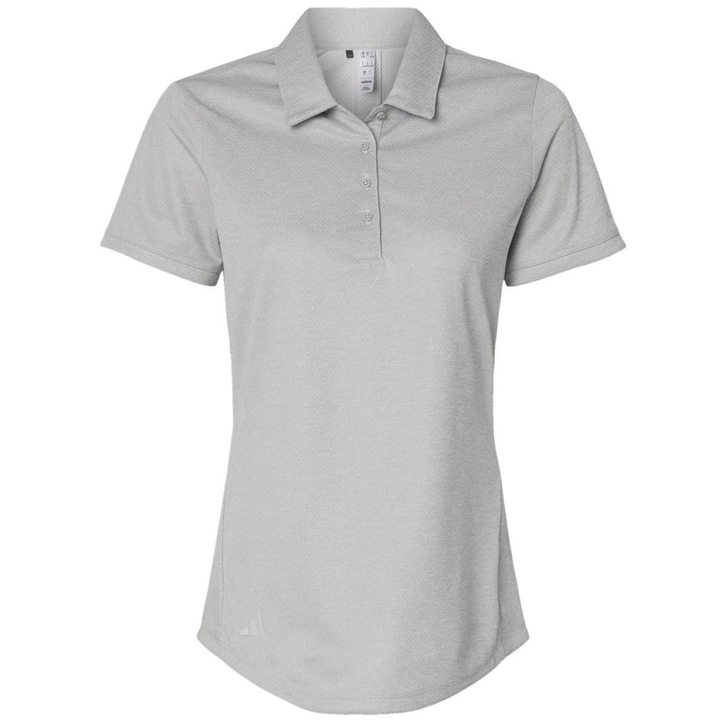 Choose a corporate logo for the Adidas Women's Grey One Heather Space Dyed Polo to create a durable, high-end uniform top perfect for a sales team member, caterer, server, and many others. The versatile polo has a shaped hem, back pleat, and regular fit for comfortable and crisp all-day wear. Give as a gift or sale at your specialty shop.This product cannot ship outside of the United States