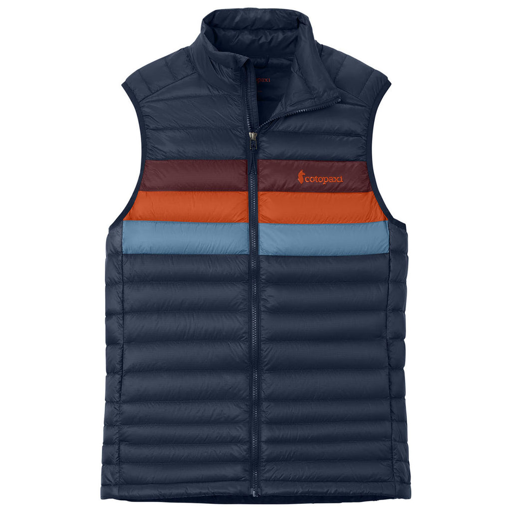 Cotopaxi Men's Maritime/Mulberry Fuego Down Vest provides premium warmth with custom lightweight comfort for layering or standalone wear. Its water-resistant finish and sustainable down fill ensure durability and ethical sourcing. Perfect for custom branding and resale, this vest delivers outdoor-ready performance and modern style, making it a versatile choice for everyday and travel use.This product can only ship within the United States and Canada.