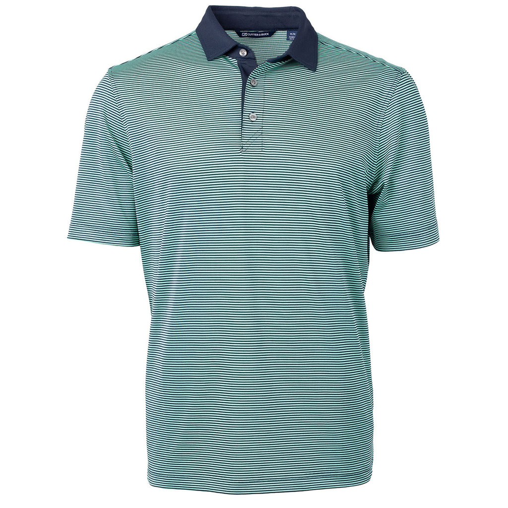 Cutter & Buck Men's Fresh Mint/Navy Blue Virtue Eco Pique Micro Stripe Recycled Tall Polo