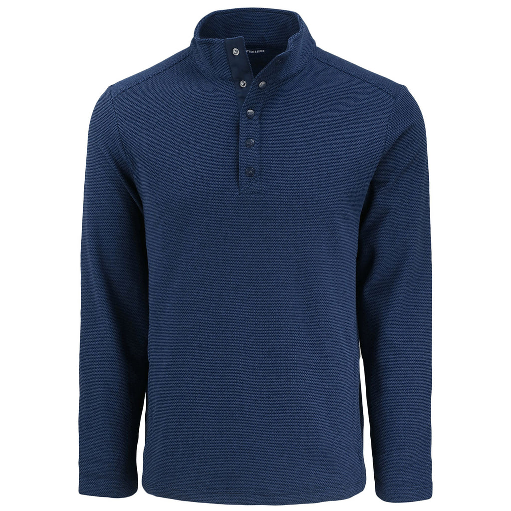 Cutter & Buck Men's Navy Blue Hunts Point Eco Textured Fleece Recycled Snap Pullover