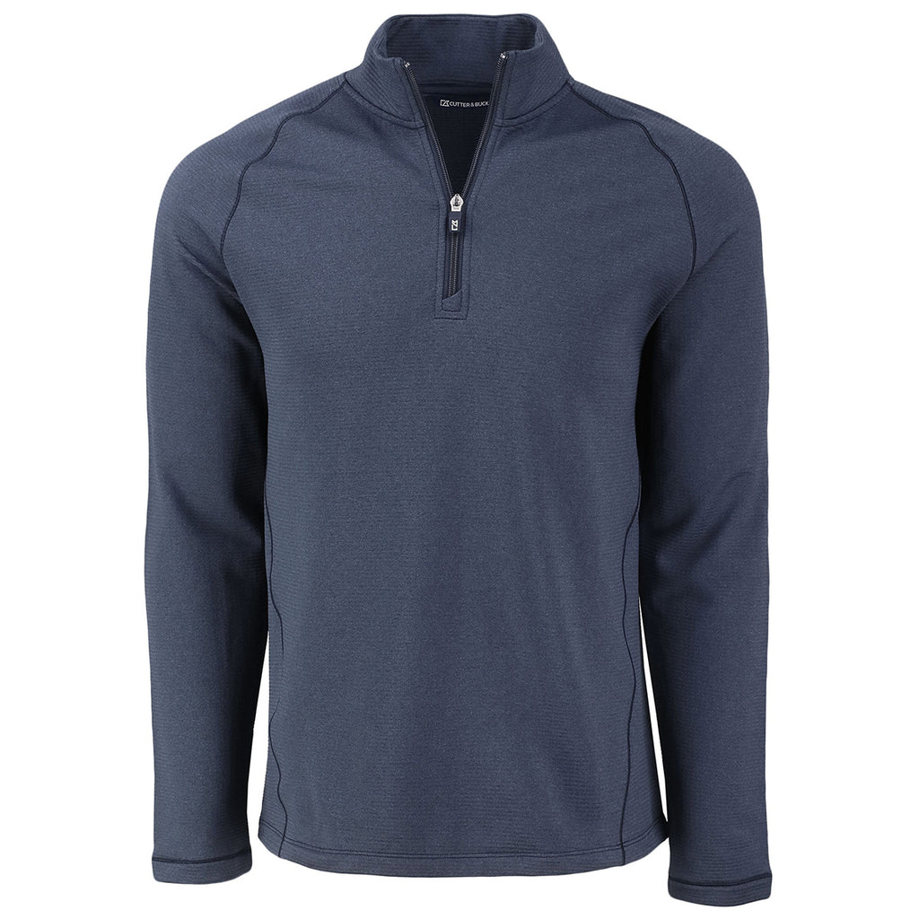 Cutter & Buck Men's Navy Blue Heather Peshastin Eco Fleece Recycled Half Zip Pullover with embroidery is a great gift for yourself or others. The breathable, moisture-wicking pullover is perfect for those who work and play outdoors. Grab this pullover for the morning commute or as you head out to hike with friends. The possibilities are limitless