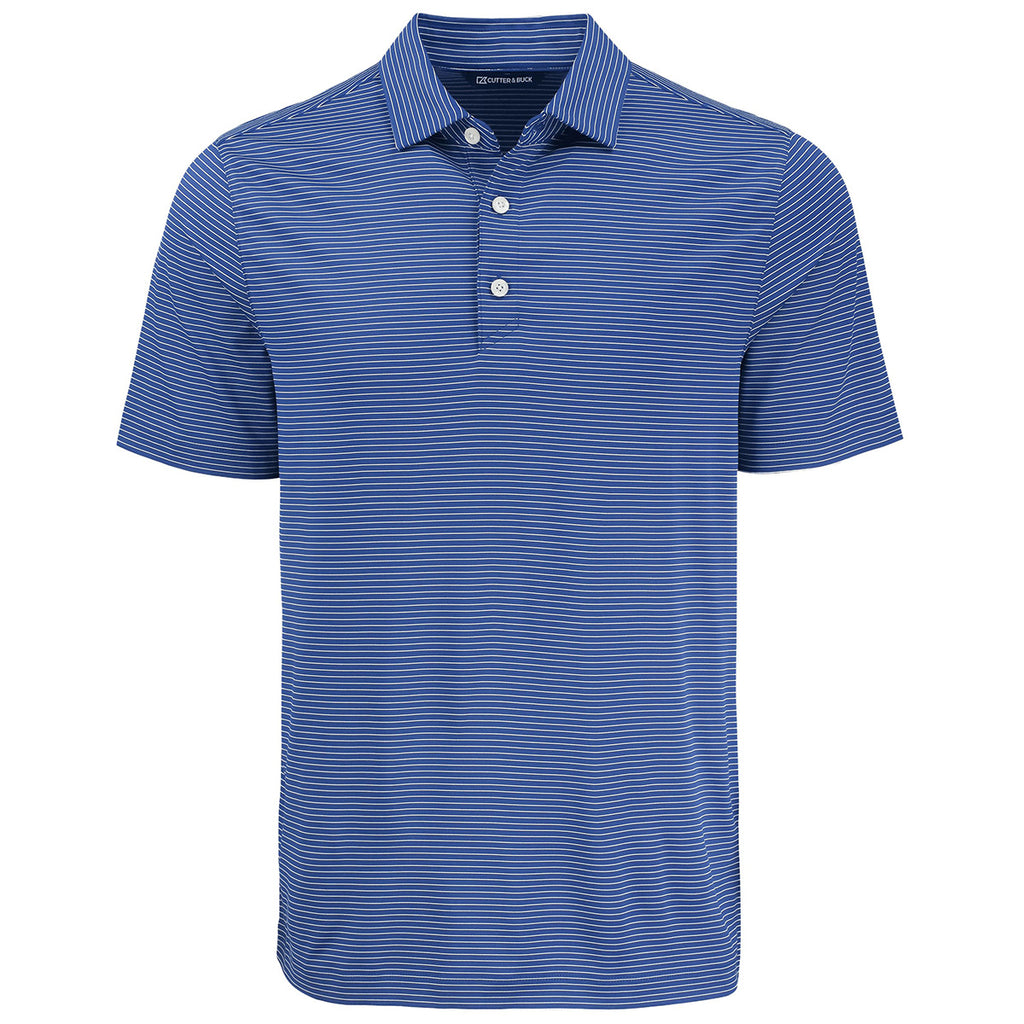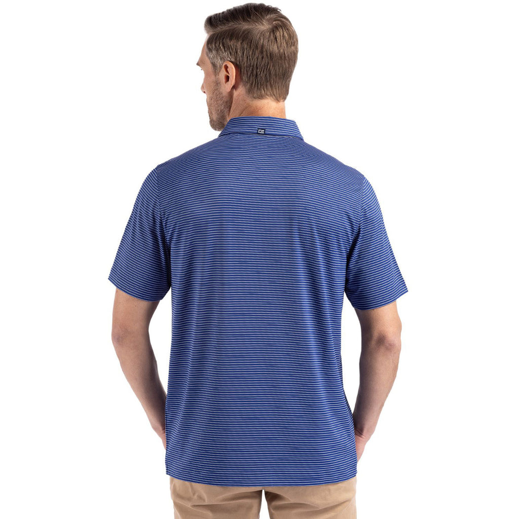 Cutter & Buck Men's Tour Blue/White Forge Eco Fine Line Stripe Stretch Recycled Polo