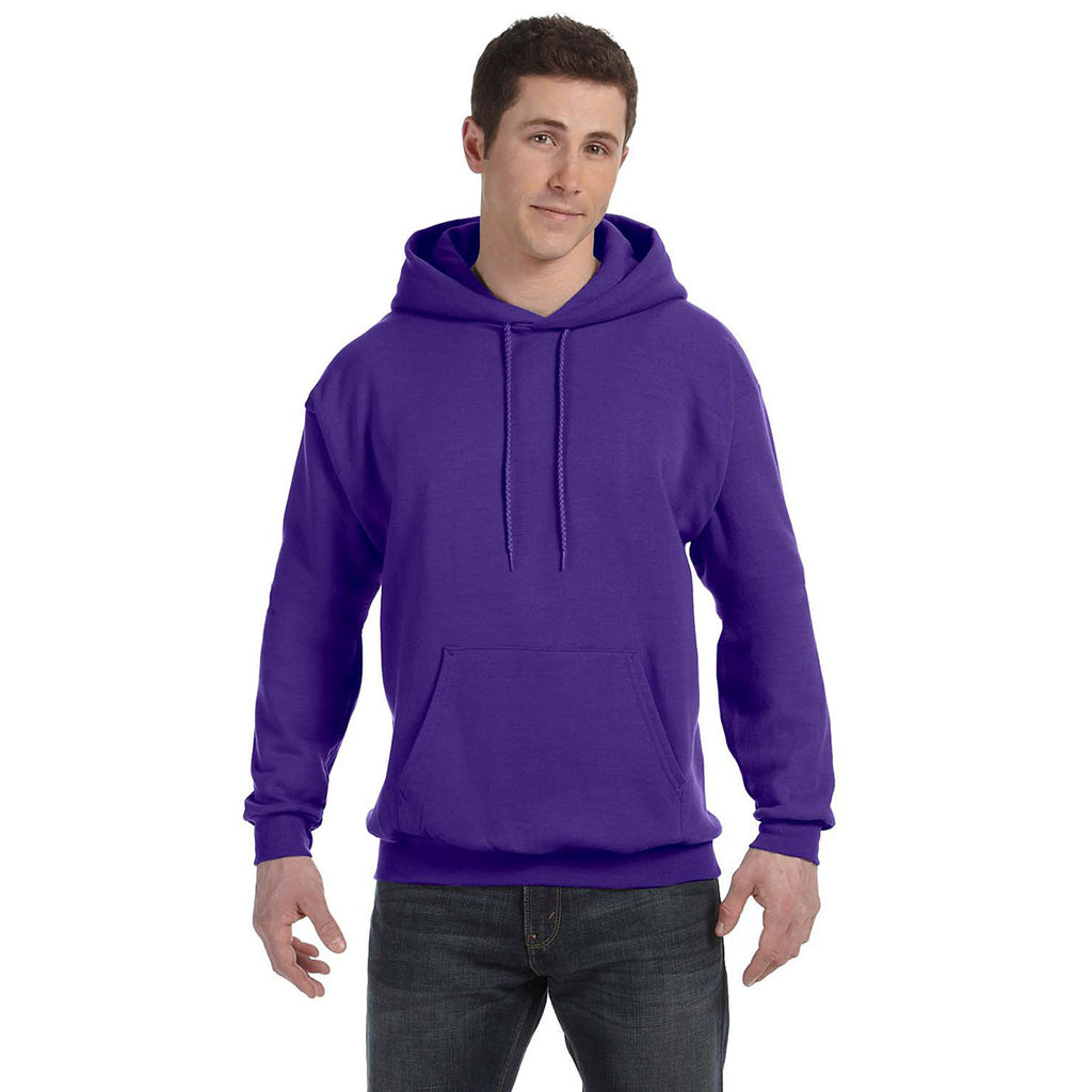 A custom hoodie is on everyone's must have list and the Hanes Men's Purple 7.8 oz. EcoSmart 50/50 Pullover Hood is no exception. Add your custom screen print to this eco-friendly hoodie with a tag-free neck and two-ply hood to give away at your next recruiting event. Ideal as employee apparel for those who need to brave the great outdoors, the large front pouch pocket means you can have all you need at an arm's length. Choose from 25 available colors to find what best compliments your company logo and then place an order before the next scheduled event.Highlights
